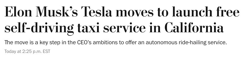 据美股投资网了解到,特斯拉正在申请加州的出租车运营许可,计划未来通过自动驾驶车辆提供网约车服务。